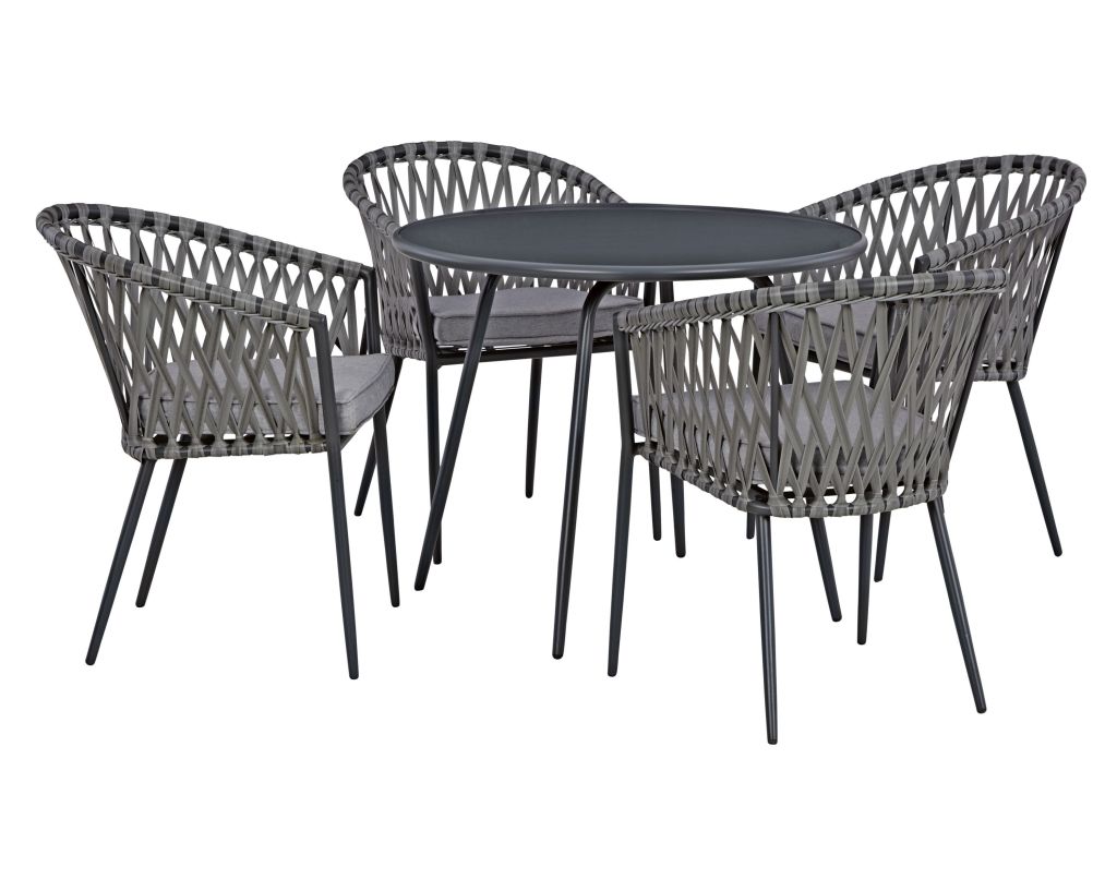 Glora Round 4 – Person 35.4” Long Dining Set with Cushions (no longer online- similar below)