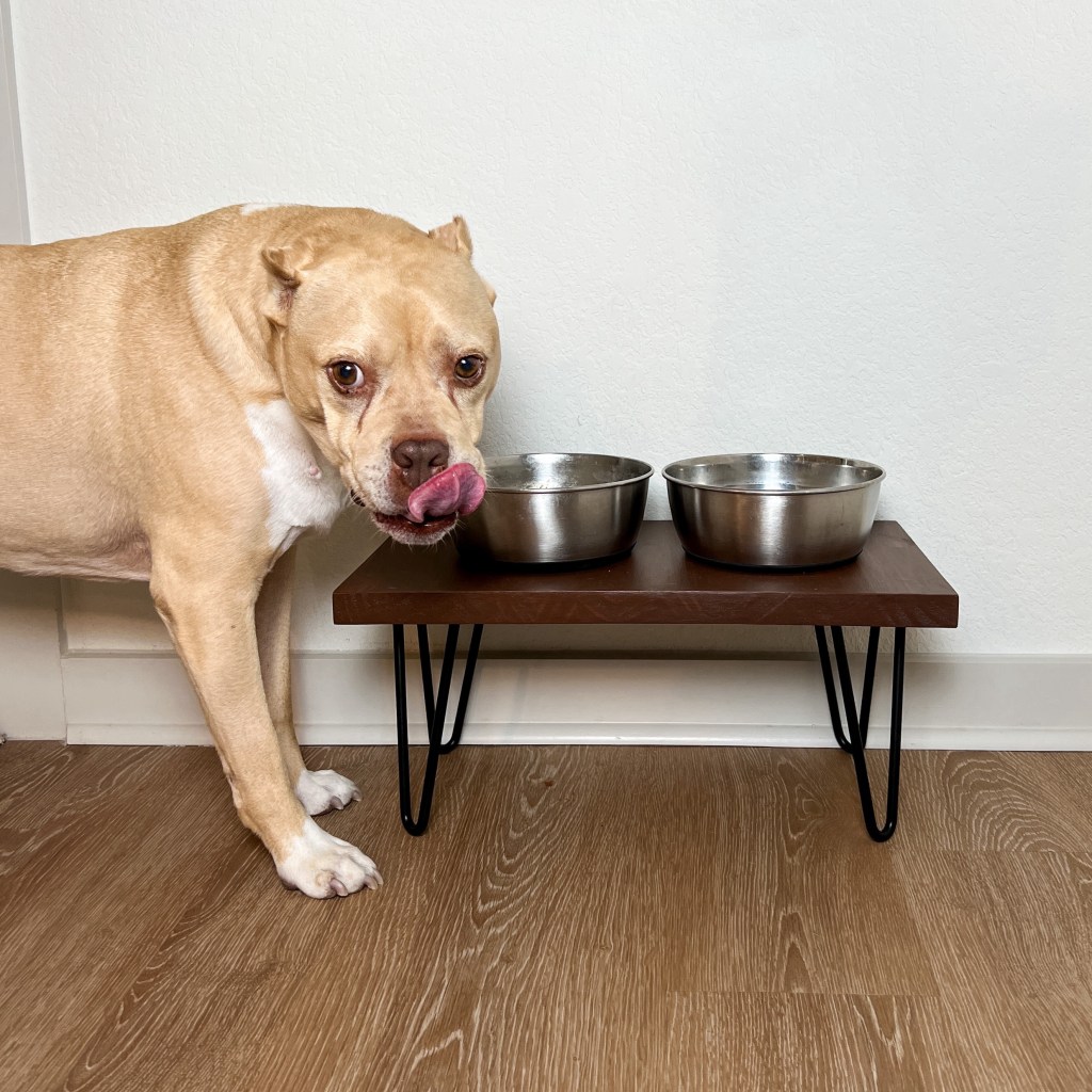 - Measure your dog (I measured to about Cheddar’s armpits) and order hairpin legs