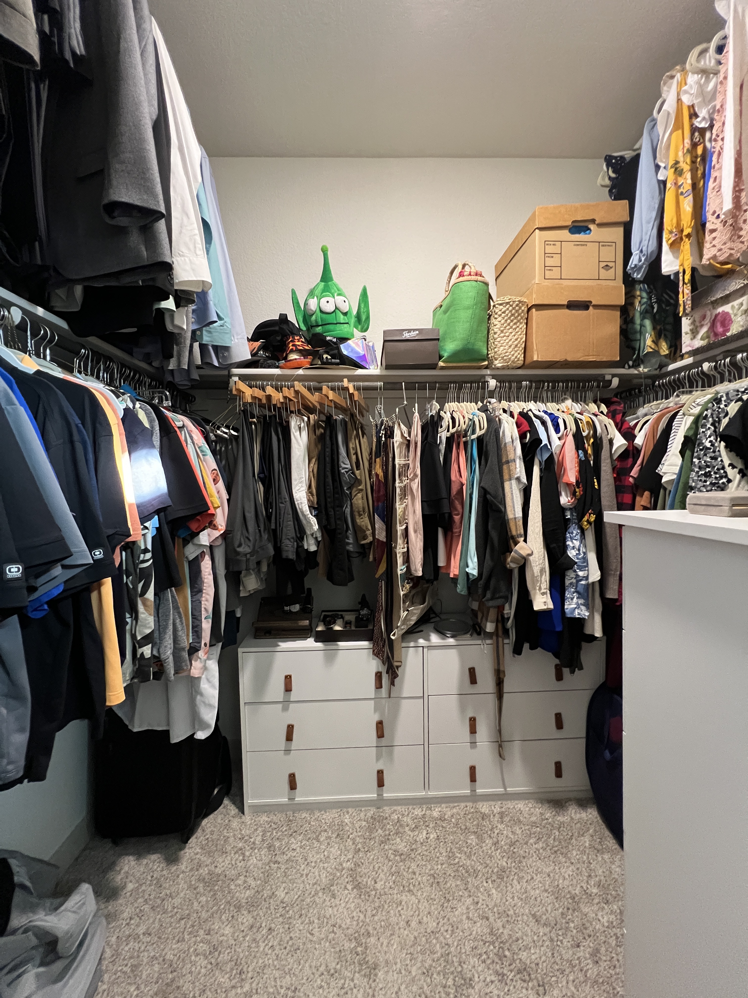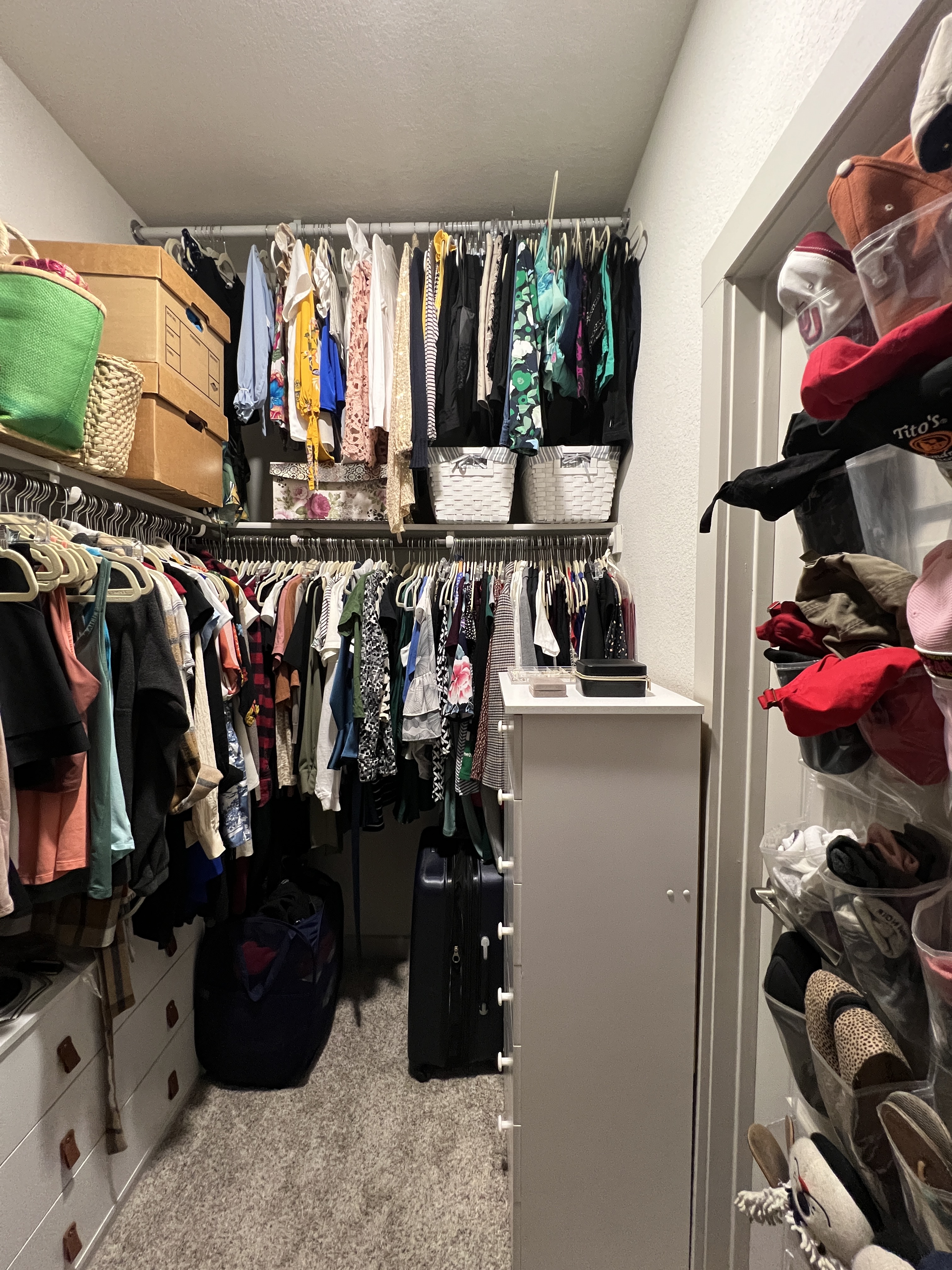 I know these look like before pictures, and maybe someday they will be! While I would love for our closet to look like my Pinterest, it’s low on the list and these things have been really helpful to maximize the space.