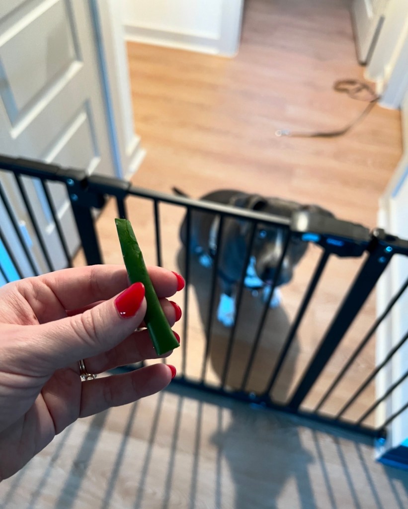 She would trim my aloe Vera plant whenever I looked away, puppy nibble my feet, and ran out the front door twice even though I know to treat any new dog like a flight risk! (See air jail pic) 🤭